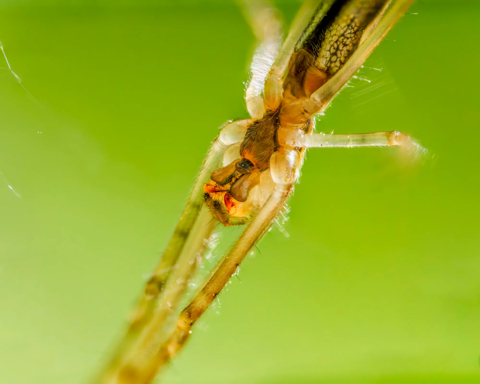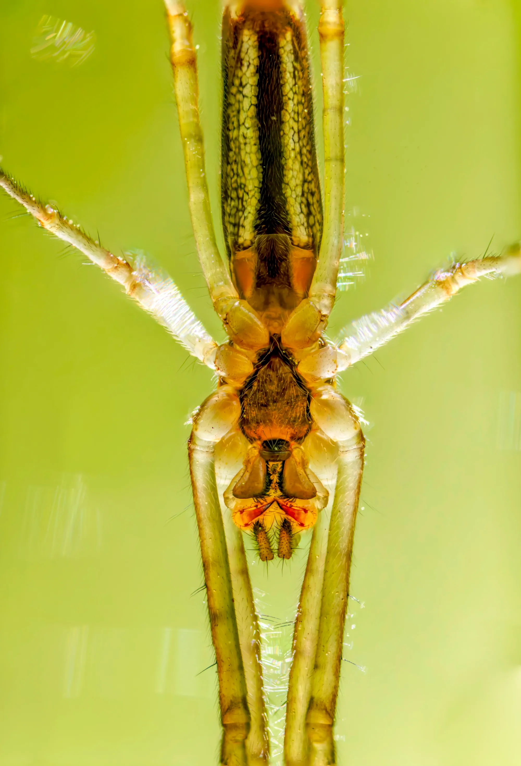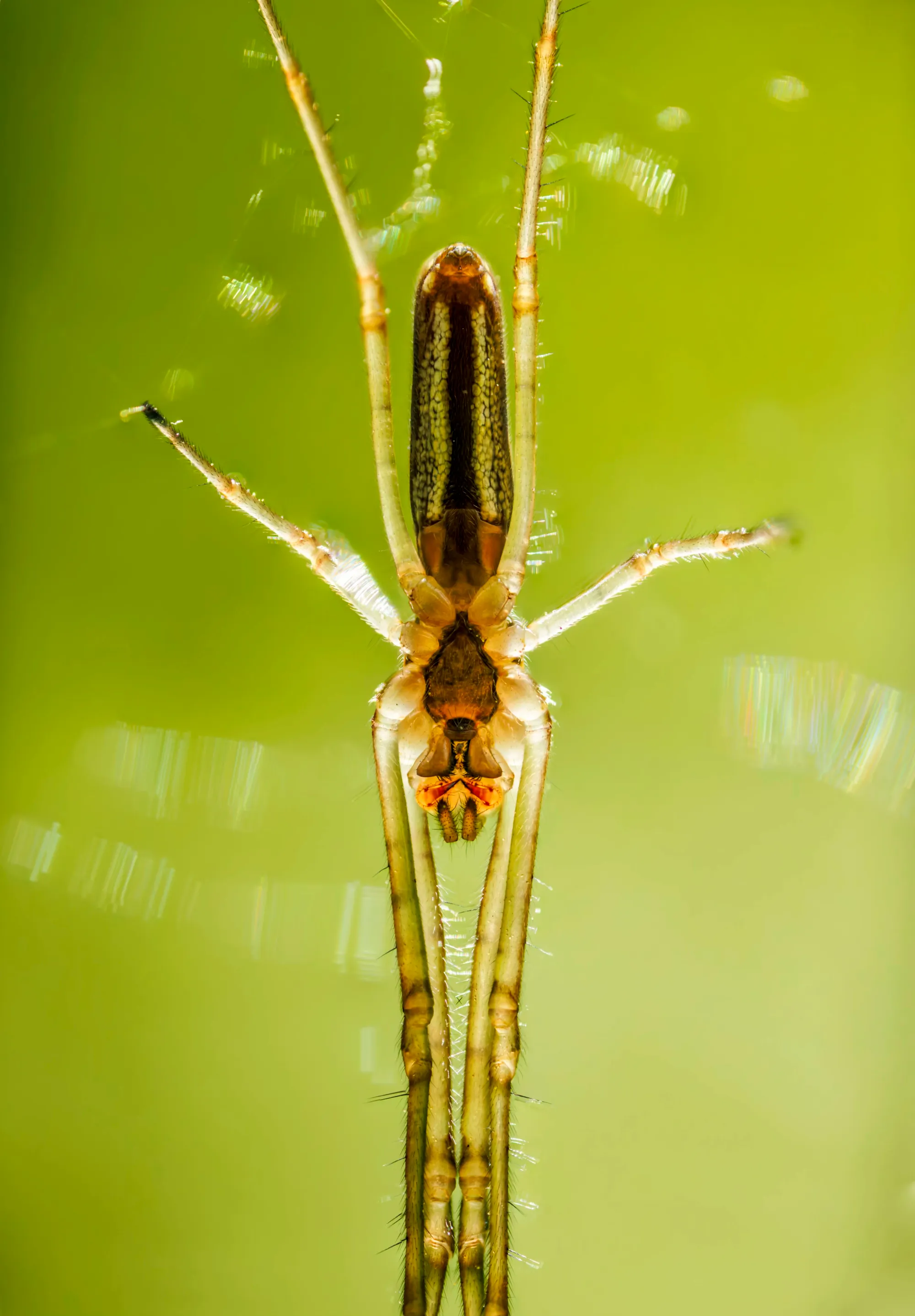 Każde zdjęcie, które widzicie w tej notce, to efekt złączenia 50-110 osobnych ekspozycji. Jak na początki takiej zabawy jestem z nich całkiem zadowolony. Pomogło, że na pająka padało słoneczne światło, dobrze doświetlające wszelkie szczegóły.