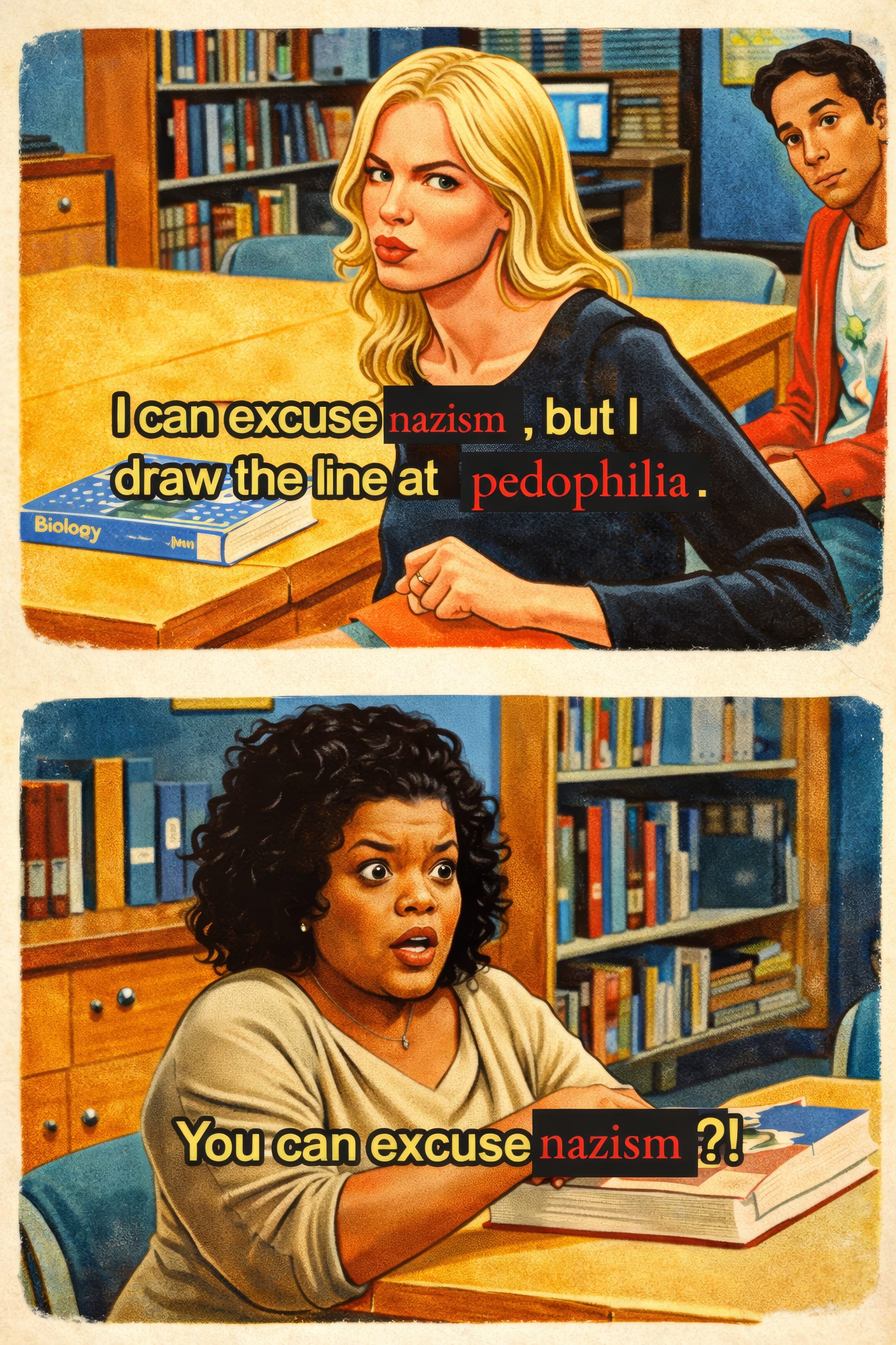 Cóż, z perspektywy czasu pozostaje mi być wdzięcznym za to fortunne zawieszenie, bo choć już wcześniej miałem moralne wątpliwości, czy aktywność na portalu dla nazistów jest etyczna (dobra, nie miałem, ale odruch shitpostowania był mocniejszy od odruchów moralnych), to w ostatnich dniach, jak się wydaje, pan Musk postanowił poszerzyć target swojego serwisu: z entuzjastów hinduskich symboli szczęścia i palenia ludźmi w piecach na entuzjastów zdejmowania ubrań z małych dzieci: