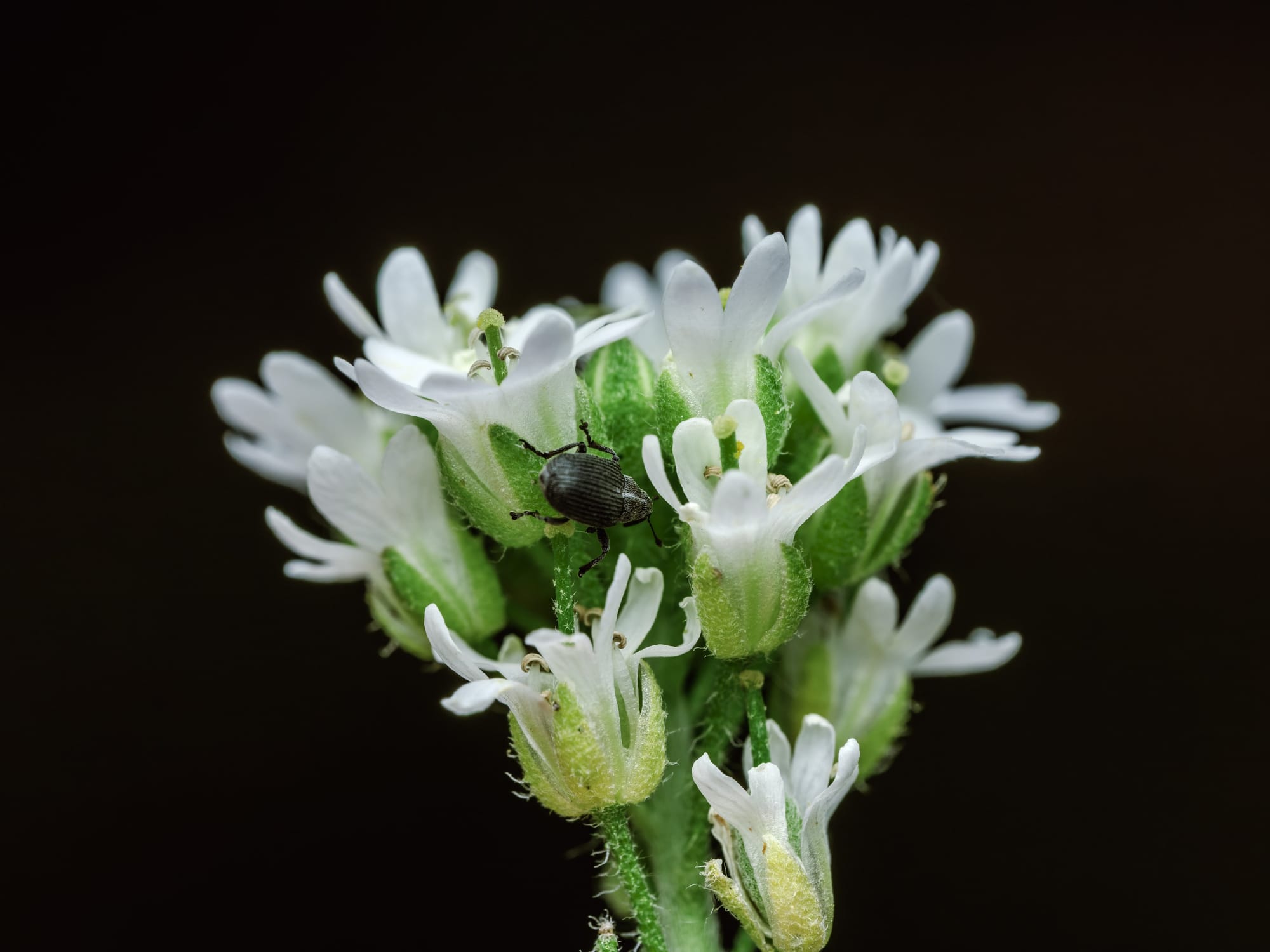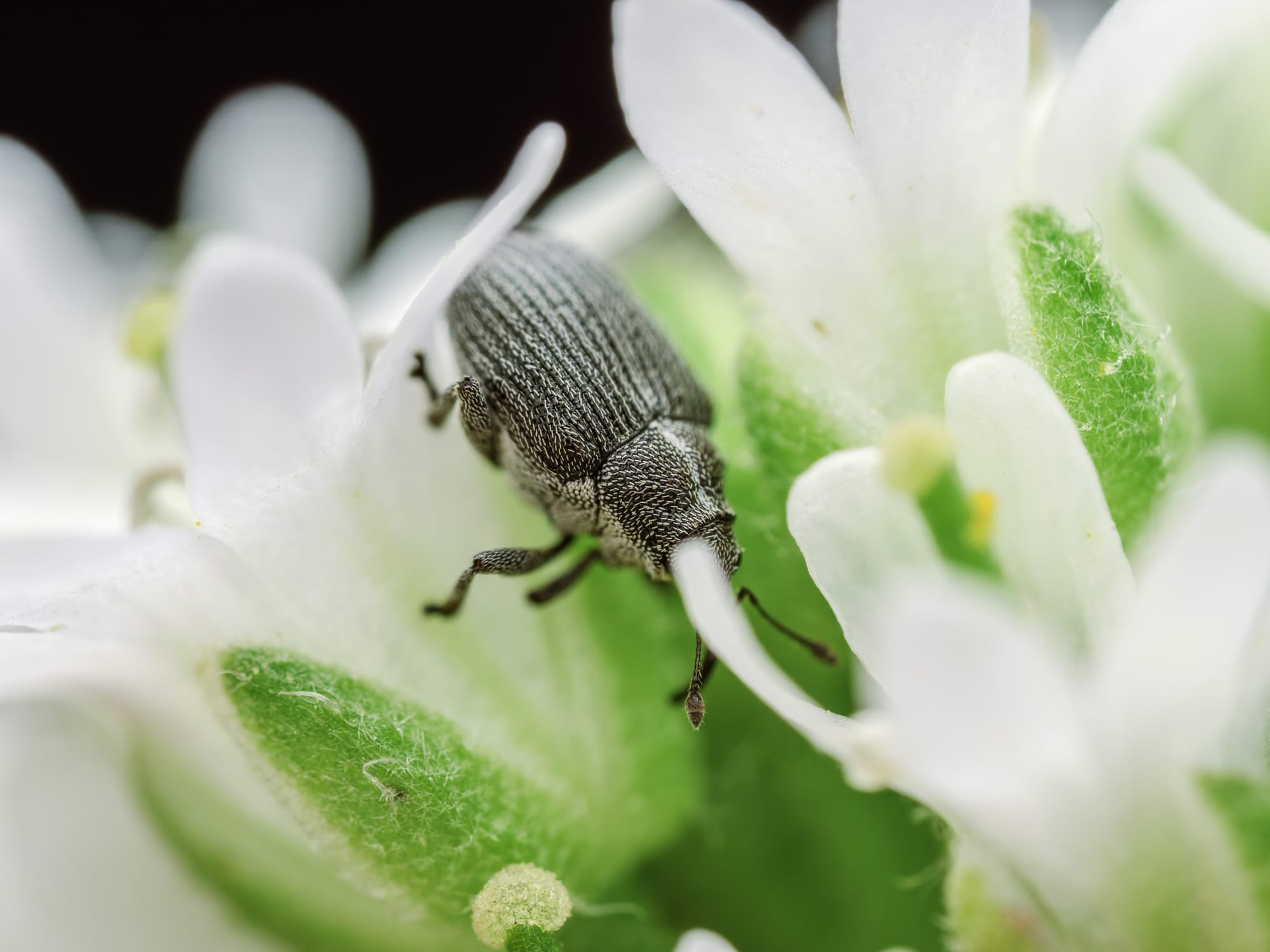 Wśród nich ukryty (prawdopodobnie) chowacz galasówek (Ceutorhynchus obstrictus):