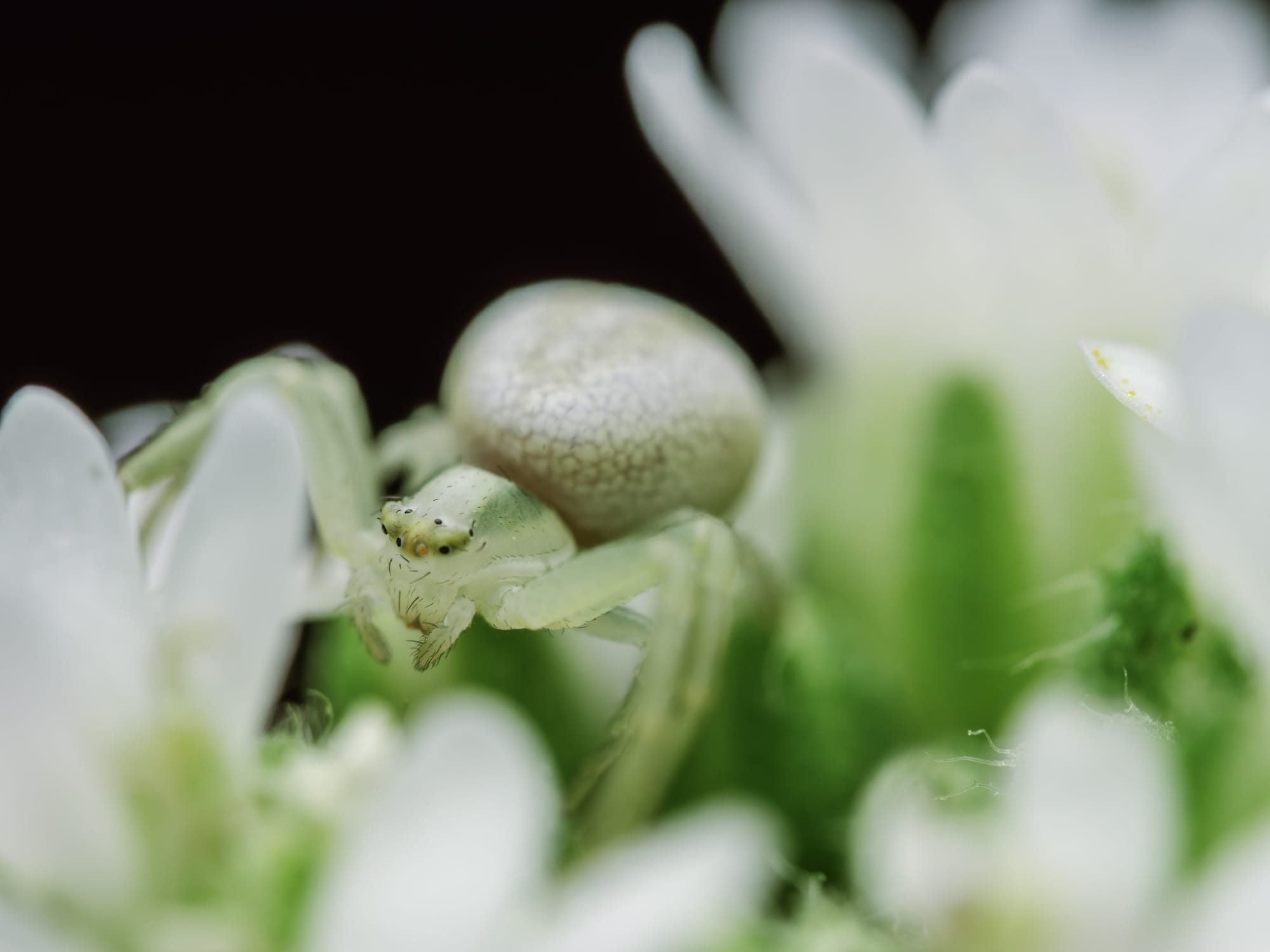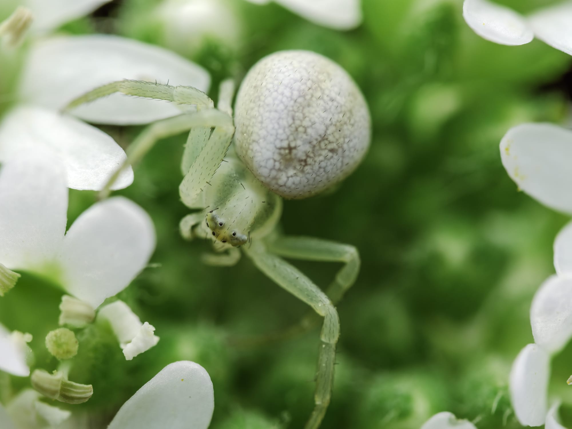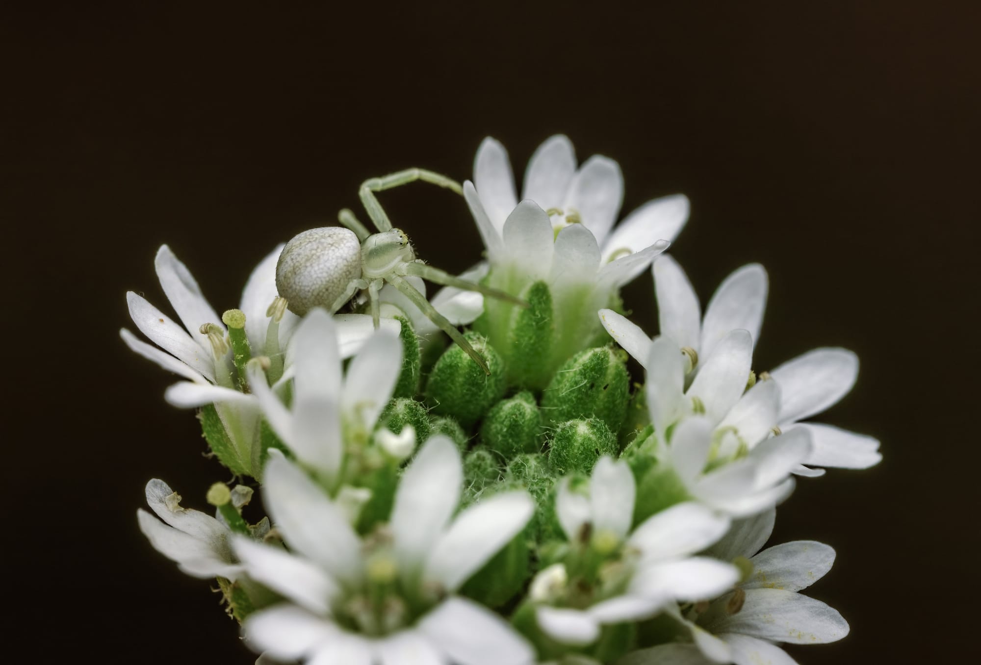 Na szczycie rośliny dobrze zamaskowany pająk kwietnik:
